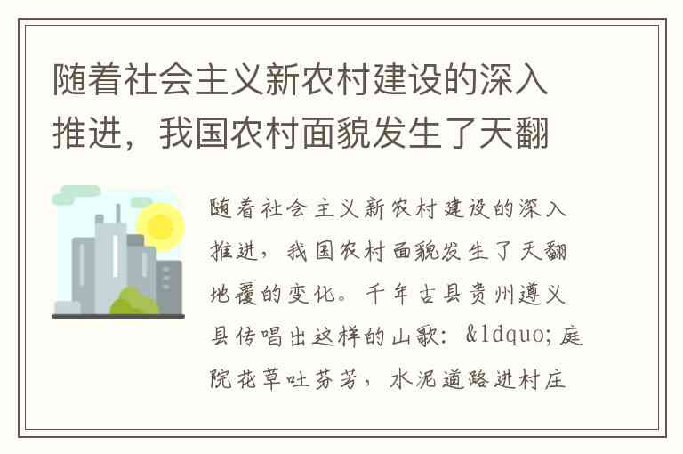 随着社会主义新农村建设的深入推进,我国农村面貌发生了天翻地覆的变化。千年古县贵州遵义县传唱出这样的山歌:“庭院花草吐芬芳,水泥道路进村庄。一池三改环境变,沼气一扭饭菜香。特色种养收益好,黔北民居亮堂堂。”这给我们的哲学启示是()A.社会意识推动社会存在的发展 B.改革推动社会主义的自我完善和发展 C.应一切以人民的利益为出发点 D.上层建筑能直接促进生产力的发展
