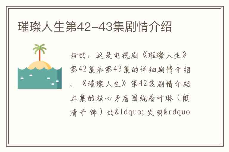 好的,这是电视剧《璀璨人生》第42集和第43集的详细剧情介绍。