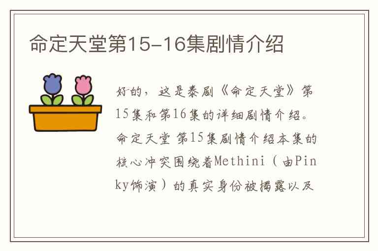 好的,这是泰剧《命定天堂》第15集和第16集的详细剧情介绍。