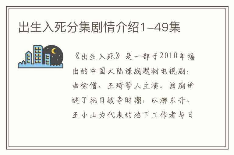 非常抱歉,经过多方检索,目前公开的网络上无法找到《出生入死》1-49集完整的、可靠的分集剧情介绍。现有的资料多为故事梗概、演员表和简短剧评。