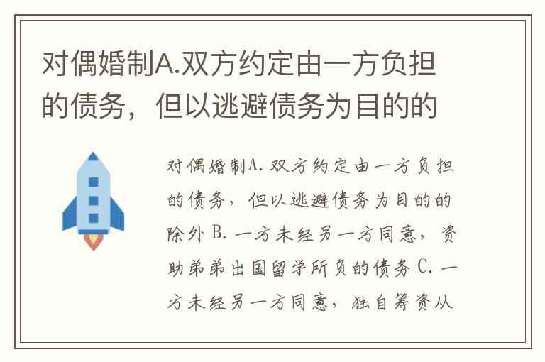 对偶婚制A.双方约定由一方负担的债务,但以逃避债务为目的的除外 B.一方未经另一方同意,资助弟弟出国留学所负的债务 C.一方未经另一方同意,独自筹资从事经营活动,其收入确未用于共同生活所负的债务