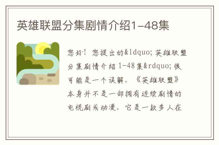 您好!您提出的“英雄联盟分集剧情介绍 1-48集”很可能是一个误解。