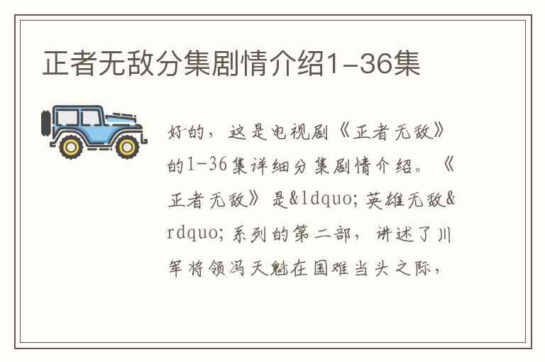 好的,这是电视剧《正者无敌》的1-36集详细分集剧情介绍。