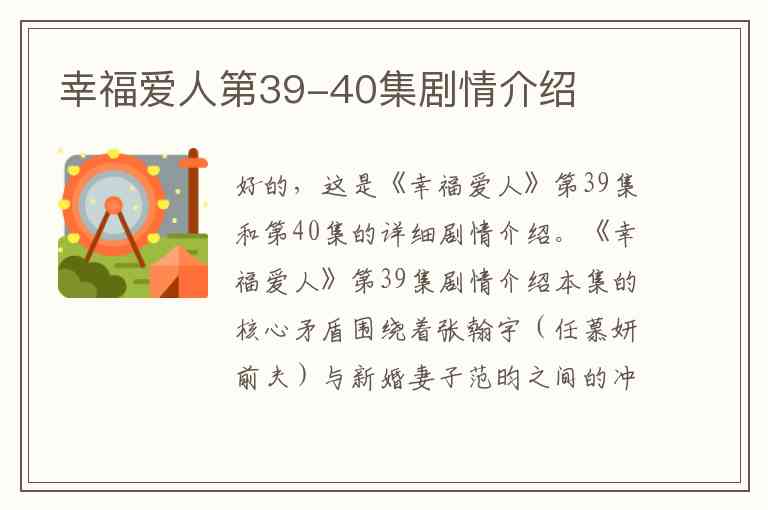 好的,这是《幸福爱人》第39集和第40集的详细剧情介绍。