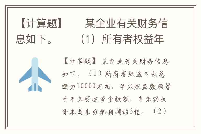 所有者权益年初总额为10000万元,年末权益数额等于年末营运资金数额,年末实收资本是未分配利润的3倍。