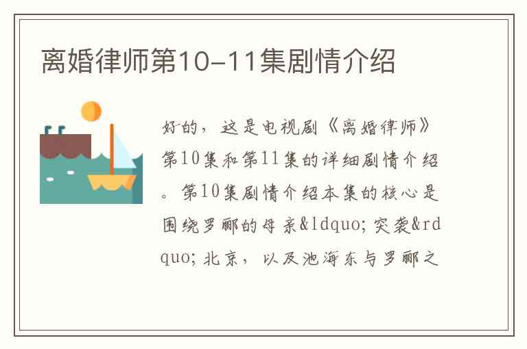 好的,这是电视剧《离婚律师》第10集和第11集的详细剧情介绍。