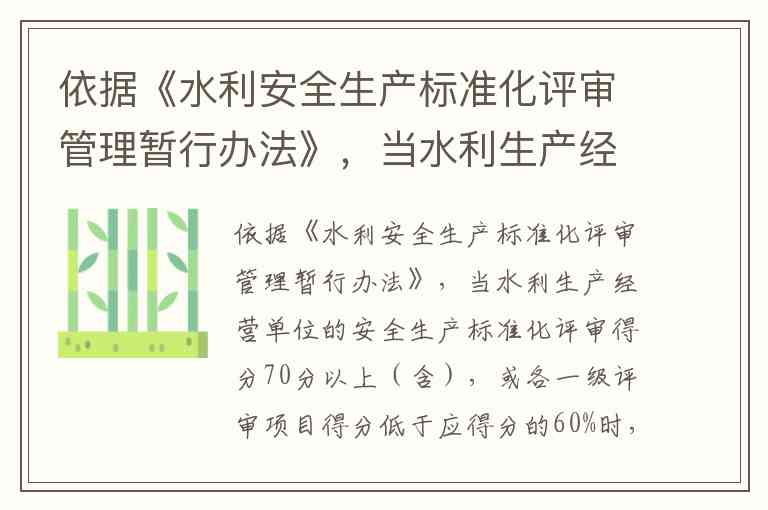根据《水利安全生产标准化评审管理暂行办法》及相关规定,当水利生产经营单位评审得分70分以上