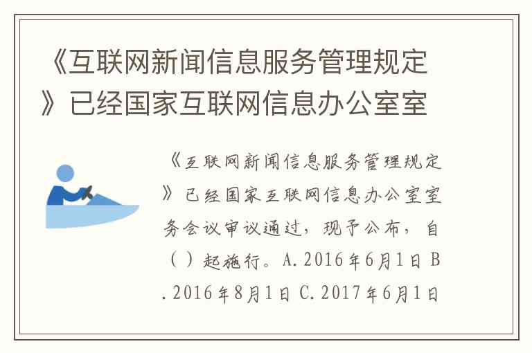 《互联网新闻信息服务管理规定》已经国家互联网信息办公室室务会议审议通过,现予公布,自()起施行。A.2016年6月1日 B.2016年8月1日 C.2017年6月1日 D.2017年8月1日