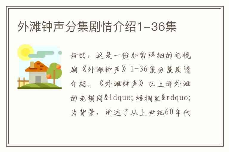 好的,这是一份非常详细的电视剧《外滩钟声》1-36集分集剧情介绍。