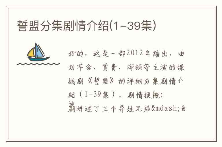 好的,这是一部2012年播出,由刘芊含、贾青、海顿等主演的谍战剧《誓盟》的详细分集剧情介绍(1-39集)。