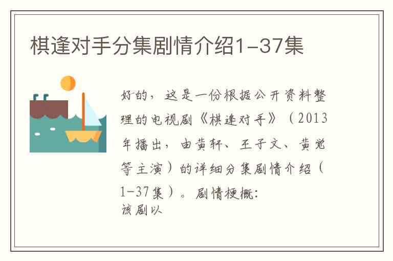 好的,这是一份根据公开资料整理的电视剧《棋逢对手》(2013年播出,由黄轩、王子文、黄觉等主演)的详细分集剧情介绍(1-37集)。