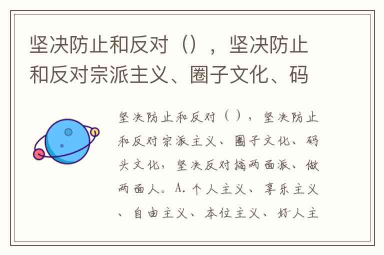 坚决防止和反对(),坚决防止和反对宗派主义、圈子文化、码头文化,坚决反对搞两面派、做两面人。A.个人主义、享乐主义、自由主义、本位主义、好人主义 B.个人主义、分散主义、山头主义、本位主义、好人主义 C.个人主义、分散主义、自由主义、本位主义、好人主义 D.个人主义、分散主义、自由主义、本位主义、享乐主义