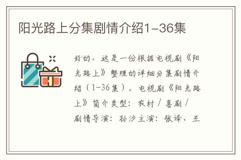 好的,这是一份根据电视剧《阳光路上》整理的详细分集剧情介绍(1-36集)。