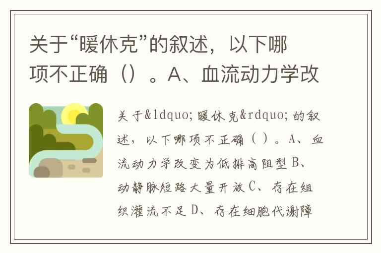 关于“暖休克”的叙述中,A选项“血流动力学改变为低排高阻型”不正确。
