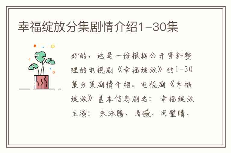 好的,这是一份根据公开资料整理的电视剧《幸福绽放》的1-30集分集剧情介绍。