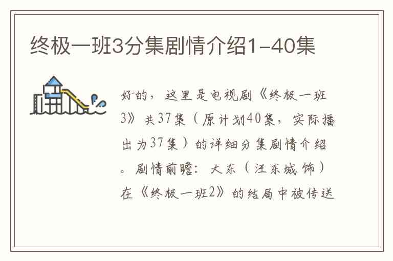 好的,这里是电视剧《终极一班3》共37集(原计划40集,实际播出为37集)的详细分集剧情介绍。