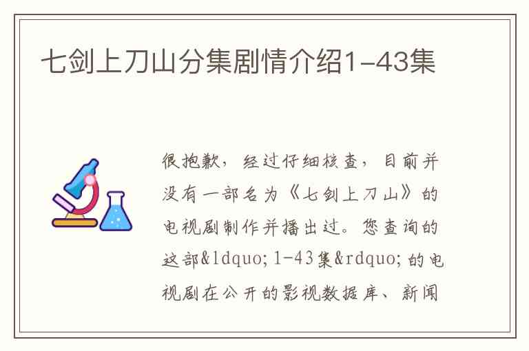 很抱歉,经过仔细核查,目前并没有一部名为《七剑上刀山》的电视剧制作并播出过。您查询的这部“1-43集”的电视剧在公开的影视数据库、新闻和资料中均不存在。