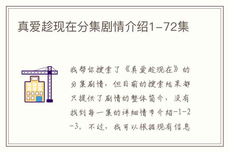 我帮你搜索了《真爱趁现在》的分集剧情,但目前的搜索结果都只提供了剧情的整体简介,没有找到每一集的详细情节介绍-1-2-3。