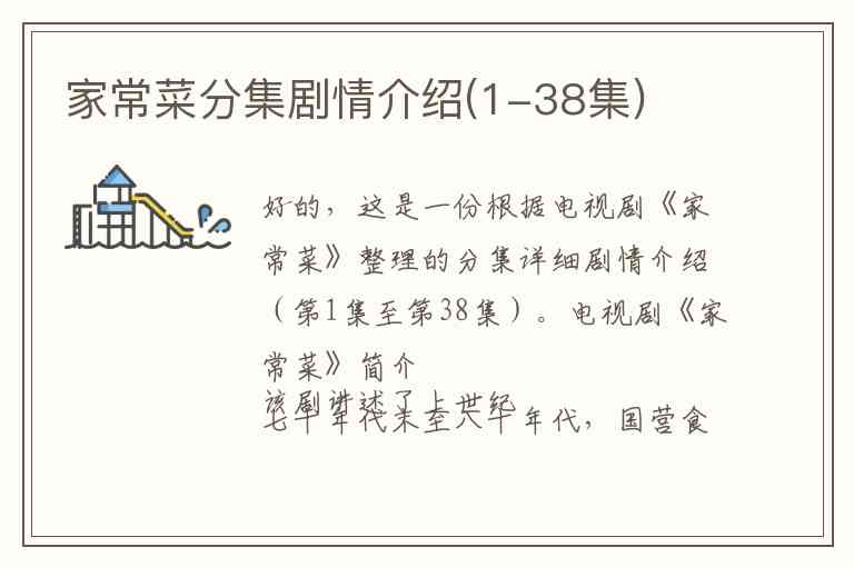 好的,这是一份根据电视剧《家常菜》整理的分集详细剧情介绍(第1集至第38集)。