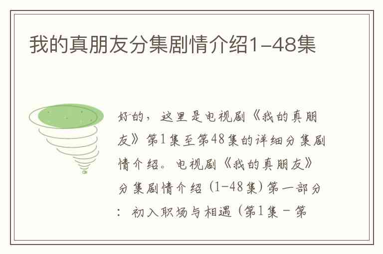 好的,这里是电视剧《我的真朋友》第1集至第48集的详细分集剧情介绍。