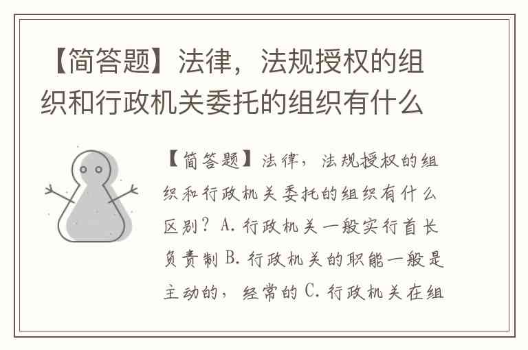【简答题】法律,法规授权的组织和行政机关委托的组织有什么区别?A.行政机关一般实行首长负责制 B.行政机关的职能一般是主动的,经常的 C.行政机关在组织上实行领导-从属制 D.行政机关行使的职权是行政管理权,不能进行立法和司法活动