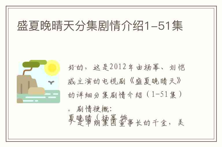 好的,这是2012年由杨幂、刘恺威主演的电视剧《盛夏晚晴天》的详细分集剧情介绍(1-51集)。