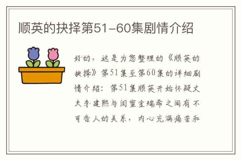 好的,这是为您整理的《顺英的抉择》第51集至第60集的详细剧情介绍: