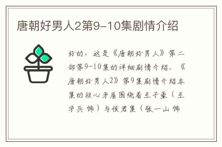 好的,这是《唐朝好男人》第二部第9-10集的详细剧情介绍。