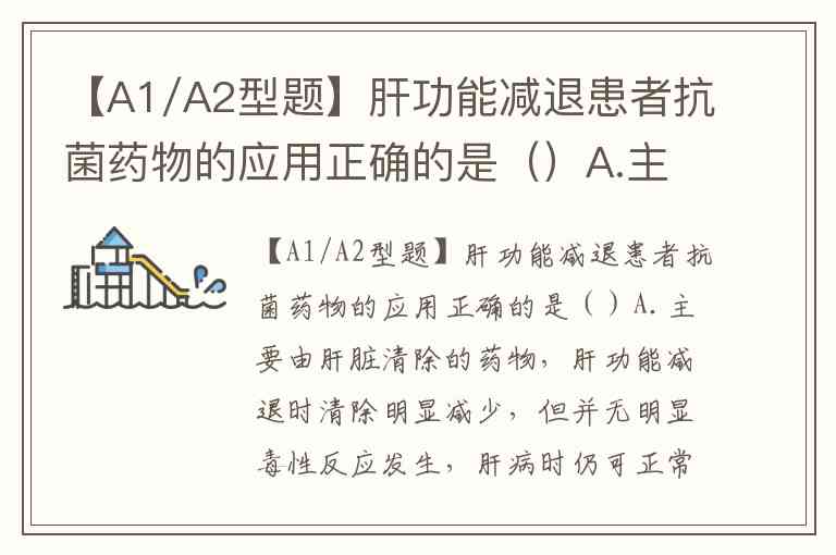 【A1/A2型题】肝功能减退患者抗菌药物的应用正确的是()A.主要由肝脏清除的药物,肝功能减退时清除明显减少,但并无明显毒性反应发生,肝病时仍可正常应用,但需谨慎,必要时减量给药,治疗过程中需严密监测肝功能 B.主要经肝脏或有相当量经肝脏清除或代谢的药物,肝功能减退时清除明显减少,并可导致毒性反应的发生,肝功能减退患者也可减量使用 C.药物经肝、肾两条途径清除时,严重肝病患者,尤其肝、肾功能同时减退的患者在使用此类药物时不需要减量 D.药物主要经肾排泄,肝功能减退者也需要调整剂量 E.肝功能减退患者,只要减量就能使用
