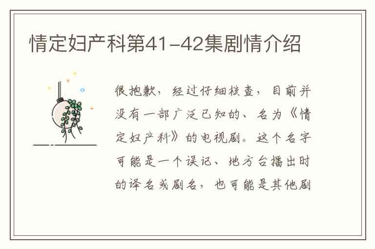 很抱歉,经过仔细核查,目前并没有一部广泛已知的、名为《情定妇产科》的电视剧。这个名字可能是一个误记、地方台播出时的译名或剧名,也可能是其他剧情的概括性描述。
