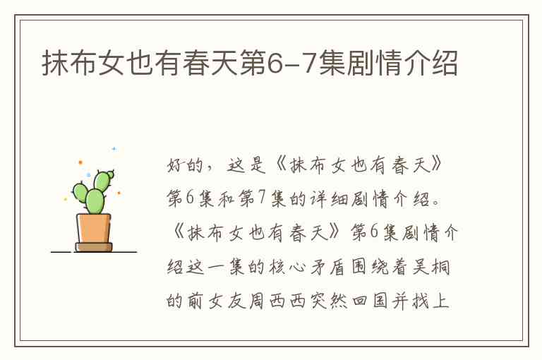 好的,这是《抹布女也有春天》第6集和第7集的详细剧情介绍。