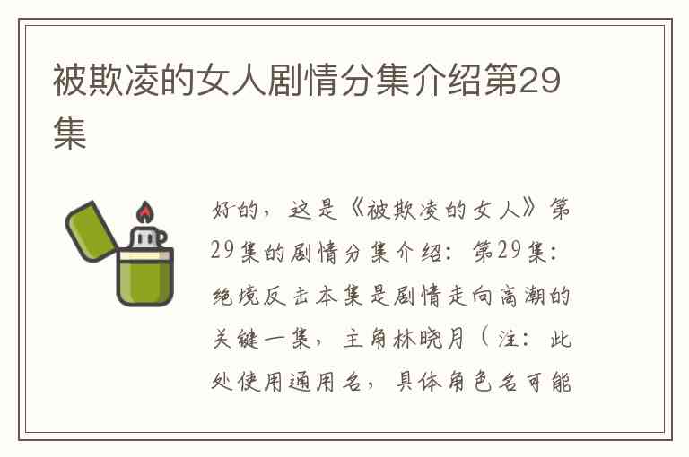 好的,这是《被欺凌的女人》第29集的剧情分集介绍: