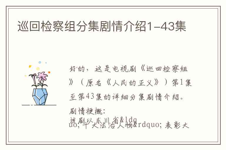 好的,这是电视剧《巡回检察组》(原名《人民的正义》)第1集至第43集的详细分集剧情介绍。