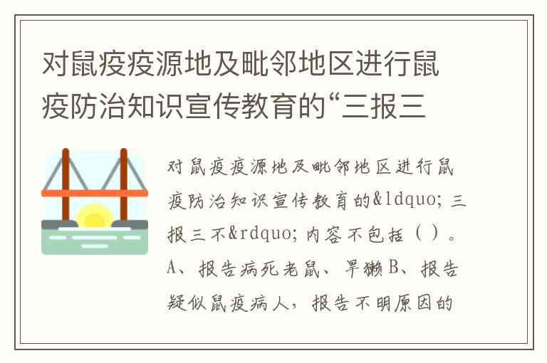 对鼠疫疫源地及毗邻地区进行鼠疫防治知识宣传教育的“三报三不”内容不包括()。A、报告病死老鼠、旱獭 B、报告疑似鼠疫病人,报告不明原因的高热病人和突然死亡病人 C、不私自捕猎疫源动物,不剥食疫源动物 D、不得携带疫源地的任何动物及产品出疫区