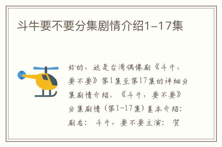 好的,这是台湾偶像剧《斗牛,要不要》第1集至第17集的详细分集剧情介绍。