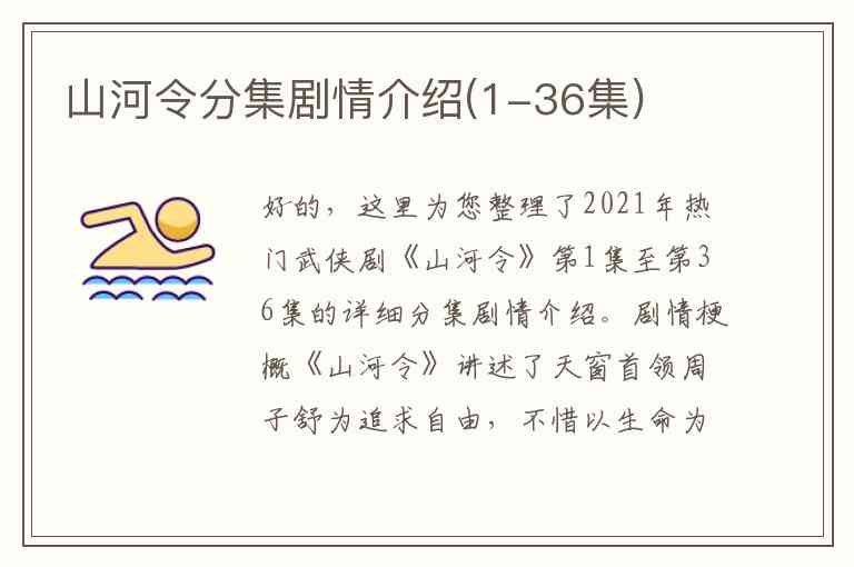 好的,这里为您整理了2021年热门武侠剧《山河令》第1集至第36集的详细分集剧情介绍。