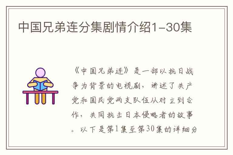 以上就是《中国兄弟连》第1集至第30集的详细分集剧情介绍。这部剧通过展现国共两党军队在抗日战争中的合作,传递了民族团结、共同抗敌的精神。