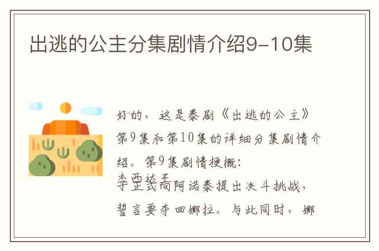 好的,这是泰剧《出逃的公主》第9集和第10集的详细分集剧情介绍。