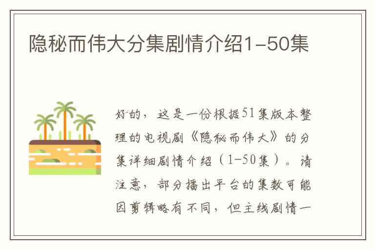 好的,这是一份根据51集版本整理的电视剧《隐秘而伟大》的分集详细剧情介绍(1-50集)。请注意,部分播出平台的集数可能因剪辑略有不同,但主线剧情一致。