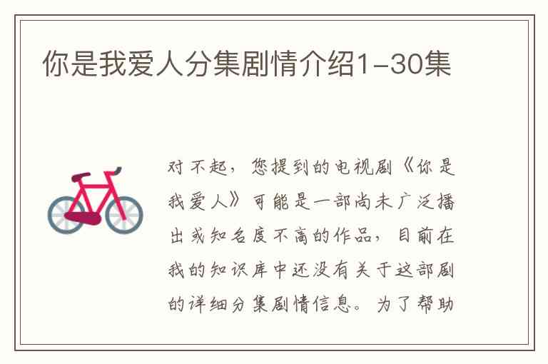 核实剧名:请确认电视剧的名称《你是我爱人》是否准确无误。有时可能存在同音字、翻译差异或记错名称的情况。