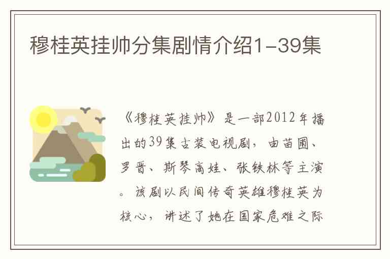 希望这份详细的分集剧情能帮助您更好地了解《穆桂英挂帅》的完整故事脉络。