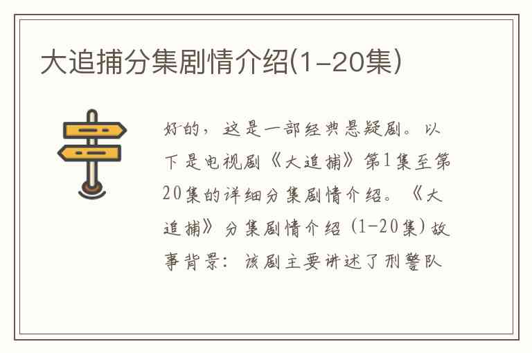 好的,这是一部经典悬疑剧。以下是电视剧《大追捕》第1集至第20集的详细分集剧情介绍。