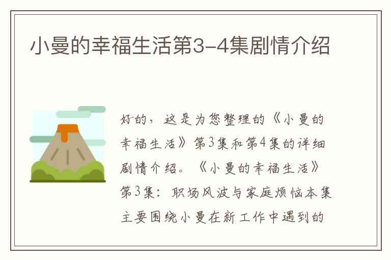好的,这是为您整理的《小曼的幸福生活》第3集和第4集的详细剧情介绍。