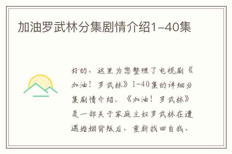 好的,这里为您整理了电视剧《加油!罗武林》1-40集的详细分集剧情介绍。