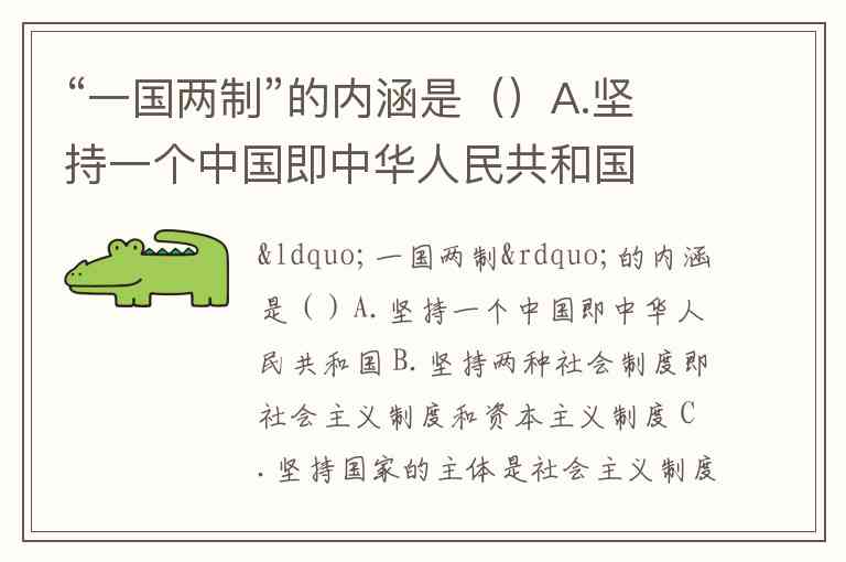 “一国两制”的内涵是()A.坚持一个中国即中华人民共和国 B.坚持两种社会制度即社会主义制度和资本主义制度 C.坚持国家的主体是社会主义制度,部分地区是资本主义制度 D.坚持运用法律手段解决大陆和特别行政区之间的矛盾