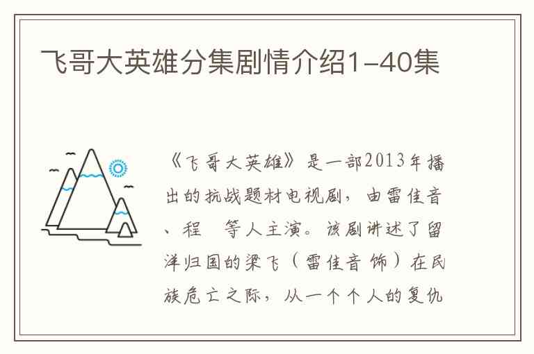 希望以上详细的分集剧情能帮助您更好地了解《飞哥大英雄》的故事情节。请注意,具体细节可能因版本不同而略有出入。