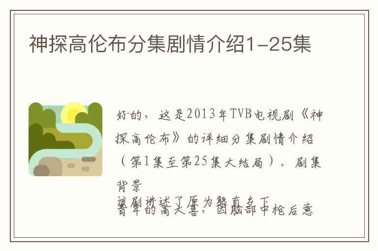 好的,这是2013年TVB电视剧《神探高伦布》的详细分集剧情介绍(第1集至第25集大结局)。