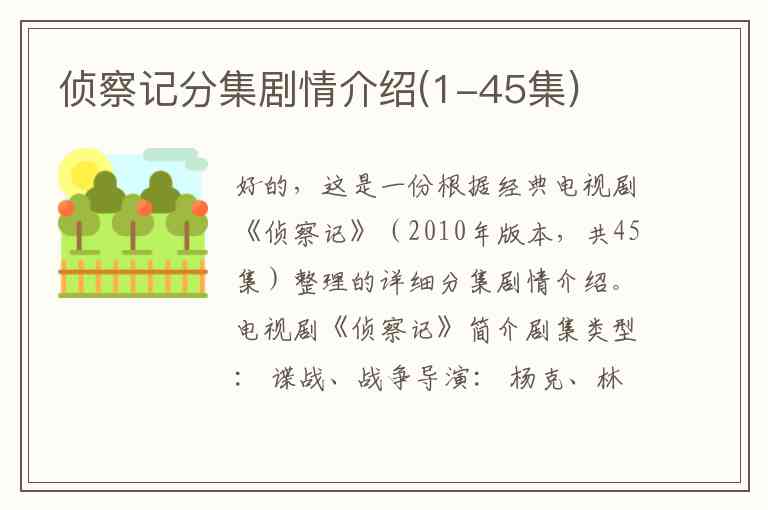 好的,这是一份根据经典电视剧《侦察记》(2010年版本,共45集)整理的详细分集剧情介绍。