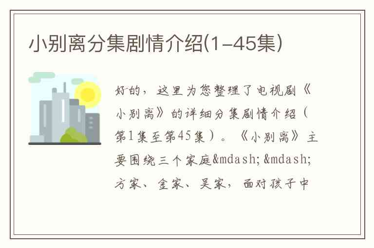 好的,这里为您整理了电视剧《小别离》的详细分集剧情介绍(第1集至第45集)。