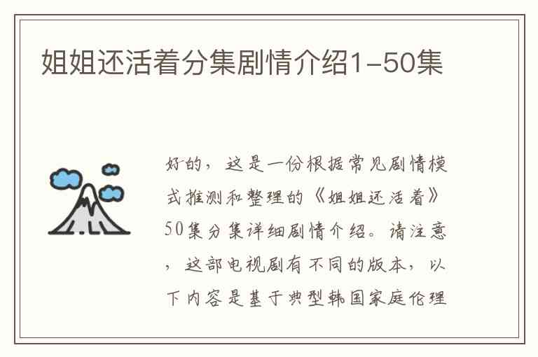 好的,这是一份根据常见剧情模式推测和整理的《姐姐还活着》50集分集详细剧情介绍。请注意,这部电视剧有不同的版本,以下内容是基于典型韩国家庭伦理剧和复仇剧的套路进行的情节梳理,可能与实际播出的版本存在差异,仅供您参考。